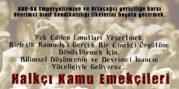 Birleşik Kamu-İş’in kangrenleşen ve sarı sendikacılığa doğru koşar adım giden sorunlarını aşmanın, sendikalarımızı nicelik ve niteli olarak büyütmenin yoludur Devrimci Sınıf Sendikacılığı. Ve bunu ancak ve ancak Devrimci Sınıf Sendikacılığının ilkelerini kendine kılavuz yapan, bu ilkeleri mücadelenin merkezine koyan, insanlığın kurtuluş mücadelesine kendi vücudunu vakfeden gerçek devrimciler başarabilir.